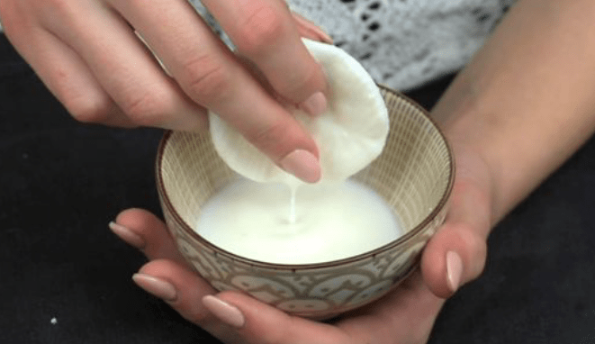 2. Now, dip a cotton ball in this and gently rub the milk on your face and neck.